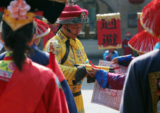 敕封典礼进行得可谓热闹,学生们披红骑马,在仪仗队的引导下从街上走过。“康熙皇帝”不但赐名号,奖现金,送字典,还赐“八八状元大宴席”,好不风光。