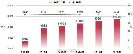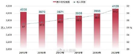 【教育部:全国在校生2.89亿人】2020年全国高中阶段毛入学率91.2%今天,教育部发布2020年全国教育事业统计主要结果。2020年,全国共有各级各类学校53.71万所,在校生2.89亿人,专任教师1792.18万人。其中,各种形式的高等教育在学总规模4183万人,高等教育毛入学率54.4%。