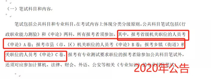 2021年申论考试级别做出重要调整:市县机关申论由原来B卷调整为A卷,与省级相同,乡镇机关由原来的C卷调整为B卷,公安法检等一线执法岗位考C卷,考生报考时一定要看好岗位的所属类别,以便针对性备考。