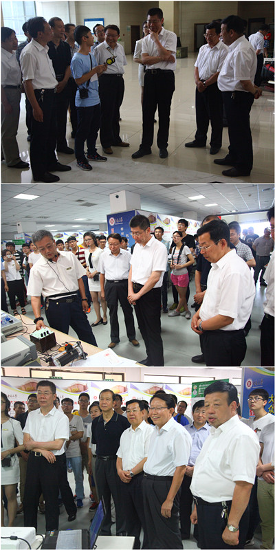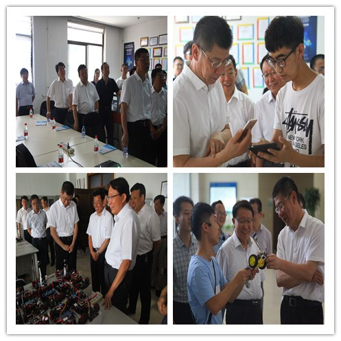 在两个多小时的参观过程中,副省长张复明首先来到山西省超重力化工工程技术研究中心,了解中心研究方向、技术优势与应用、科研成就、产学研合作、经济与社会效益等方面情况,并与刘有智校长进行了深入探讨。随后,副省长张复明重点参观了我校本科教学创新教育成果展和计算机控制工程学院“新动力梦工厂”、仪器与电子学院创新精英研究院等,对我校创新教育普及范围、取得的成绩给予了充分的肯定。参观期间,张复明副省长耐心地听学生一个接一个介绍自己的作品,饶有兴味地观看了赛车、无人机、水中机器人、舞蹈机器人等作品的现场演示,兴之所至还亲自动手操作、与学生进行互动,并对同学们的创新成果提出改进意见和建议。当听说学生的创新支出目前主要靠自己支付时,张副省长指示学校要给予经费、政策等各项支持,以解决学生创新的束缚。