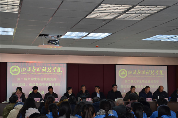 2016年1月5日下午,我校在图书馆六楼召开第二届大学生职业技能竞赛暨国家级、省级各类竞赛获奖师生表彰大会。校长宋兴航,党委书记郭巍伟,副校长王复兴,督学李维生,党委副书记兼校长助理原美荣,教学指导委员会常务副主任周全寿,校长助理贺有,财经学院院长阎应福,艺术学院院长米万锁,管理学院院长常永翔,图书馆馆长梁福有出席大会;二级学院各教学副院长、教学干事、系主任及参加本届竞赛的学生参加会议。会议由督学李维生主持。