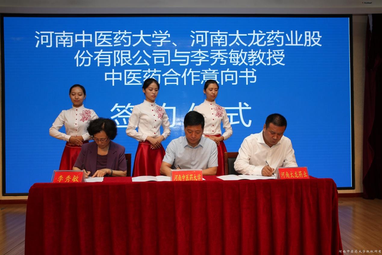 河南中医学院与李秀敏教授、河南太龙药业股份有限公司签订中医药合作意向书