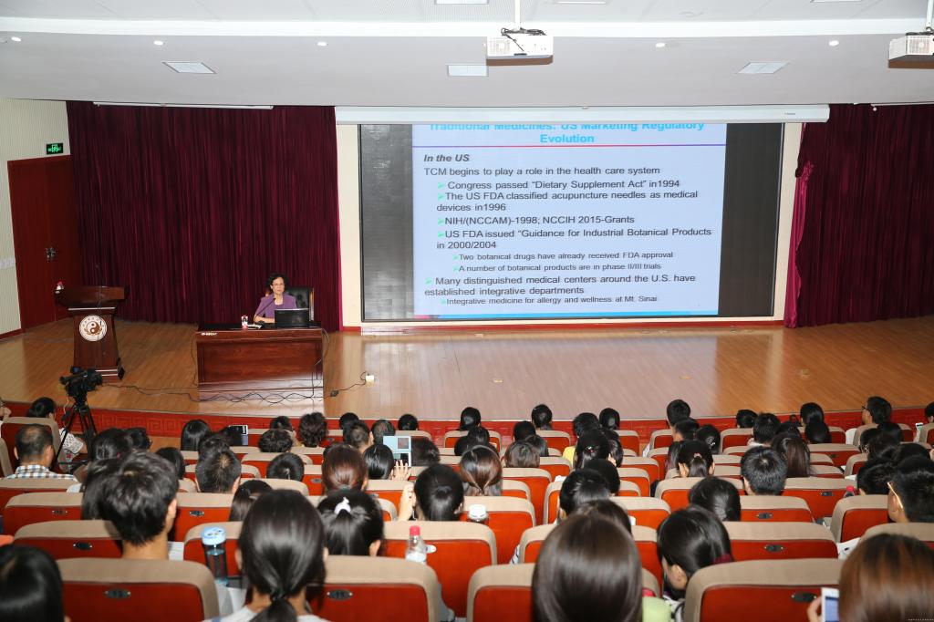 李秀敏教授向与会人员介绍了中医药治疗过敏性疾病的研究和临床应用情况,中草药在不同国家,尤其是美国市场上的地位、发展过程,中医药治疗过敏性休克、食物过敏、过敏性鼻炎、过敏性湿疹等过敏性疾病的特殊案例。李秀敏教授的讲座逻辑严密,阐述详细,对一些特殊案例的治疗思路给临床及科研带来很多借鉴和启发。李秀敏教授与听众的互动,精彩纷呈,赢得阵阵掌声。此次“百家论坛”讲座是我校科技工作会的重要活动之一。