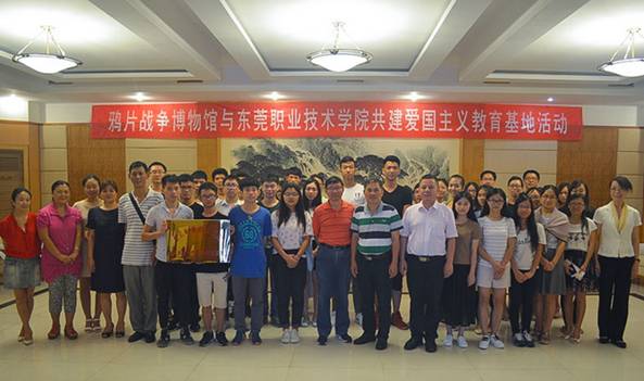 2016年7月6日上午,我院联合鸦片战争博物馆举行东莞职业技术学院爱国主义教育基地挂牌仪式。东莞职业技术学院党委副书记莫强、鸦片战争博物馆副馆长唐立鹏、东莞职业技术学院师生代表及鸦片战争博物馆工作人员等共50余人参加了挂牌仪式。