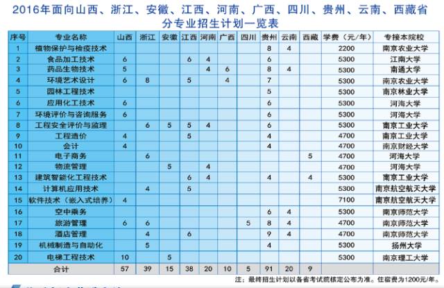 2016年山西、浙江、安徽、江西、河南、广西、四川、贵州、云南、西藏省份专业招生一览表